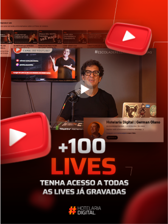 Aproveite os conteúdos disponíveis no nosso canal. São +400 vídeos com conteúdo rico apresentados por German Olano com dicas valiosas pra você começar a implementar na sua hotelaria